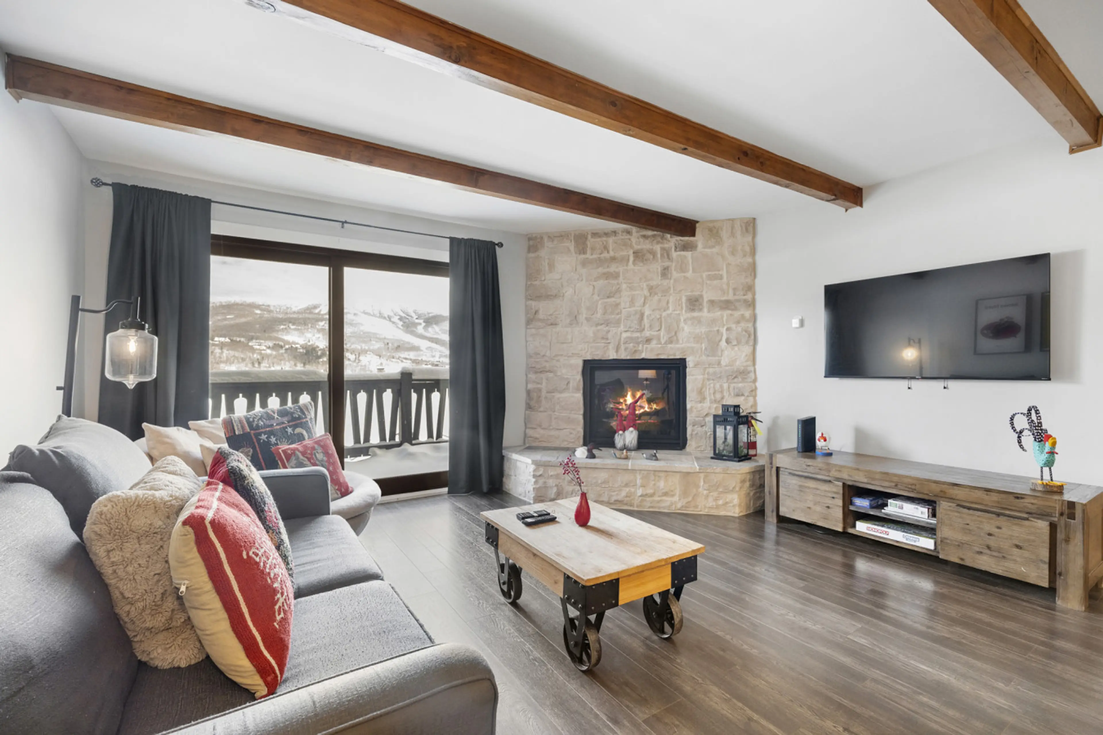 Relax and reconnect as a family in this luxurious condominium with rustic minimalist style in the heart of Mont Tremblant! This condominium, only accessible by the stairs, is only accessible by stairs and is perfect for families looking for a convenient and affordable place to stay in the Mont Trem...