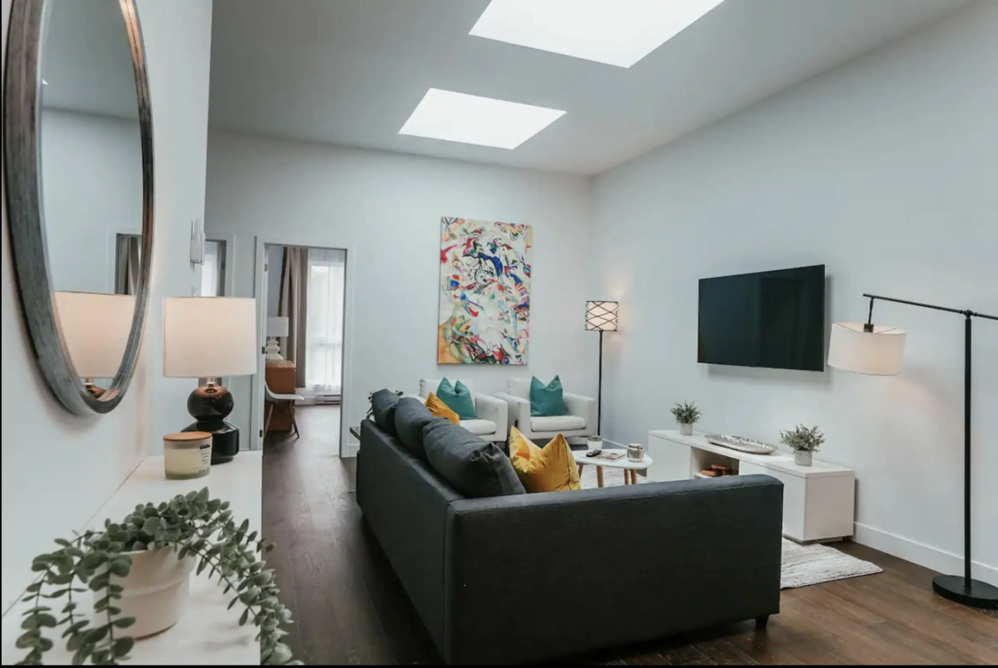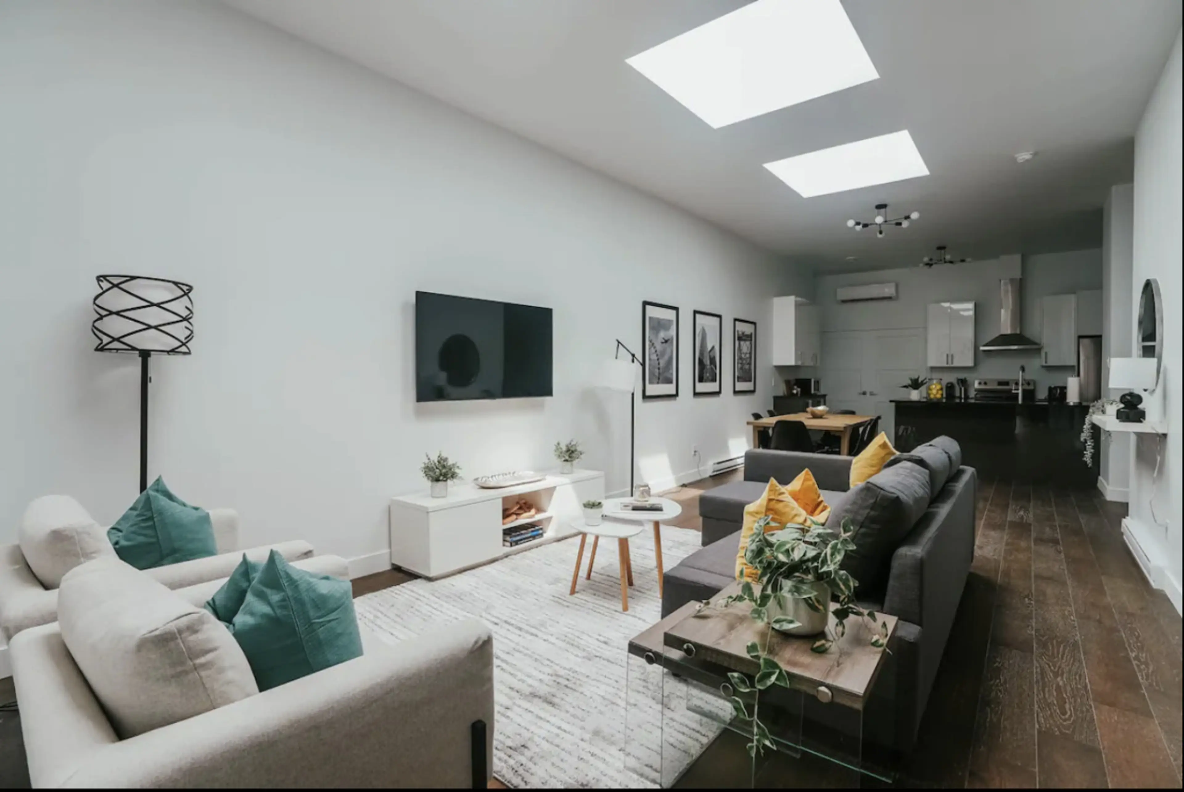 Enjoy a stylish & bright condo located in the heart of St Hubert Plaza. Our 2-bedroom, 1,200 sq feet boasting a 10ft ceiling home sleeps 4. Enjoy modern comforts with a fully loaded kitchen including a Nespresso machine, microwave, dishwasher, washer & dryer. Stay cozy with AC, and experience conve...